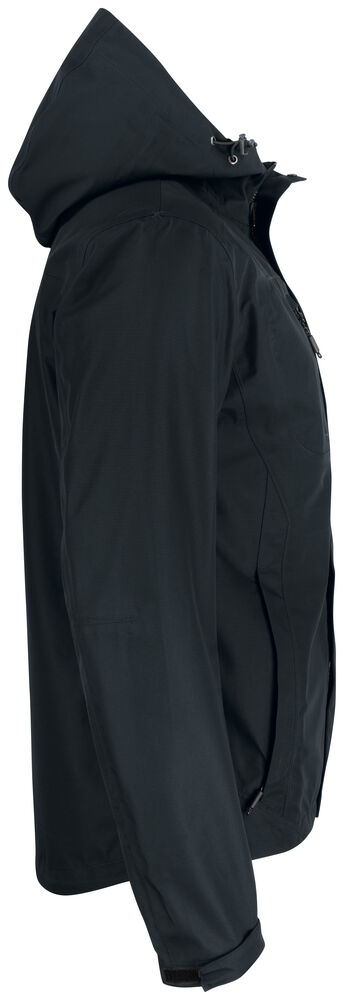 Moderne, functionele shell jas met diverse handige details. De jas is zorgvuldig afgewerkt met getapete naden, een trekkoord in de capuchon en in de boord, klittenband onderaan de mouwen en ventilerende panelen onder de armen. De jas is gemakkelijk te veredelen dankzij de drukkersrits aan de binnenzijde. Verder is de jas voorzien van twee borstzakken met rits, een zak aan de binnenzijde met rits en waterproof ritsen op de voorzijde en bij de steekzakken.