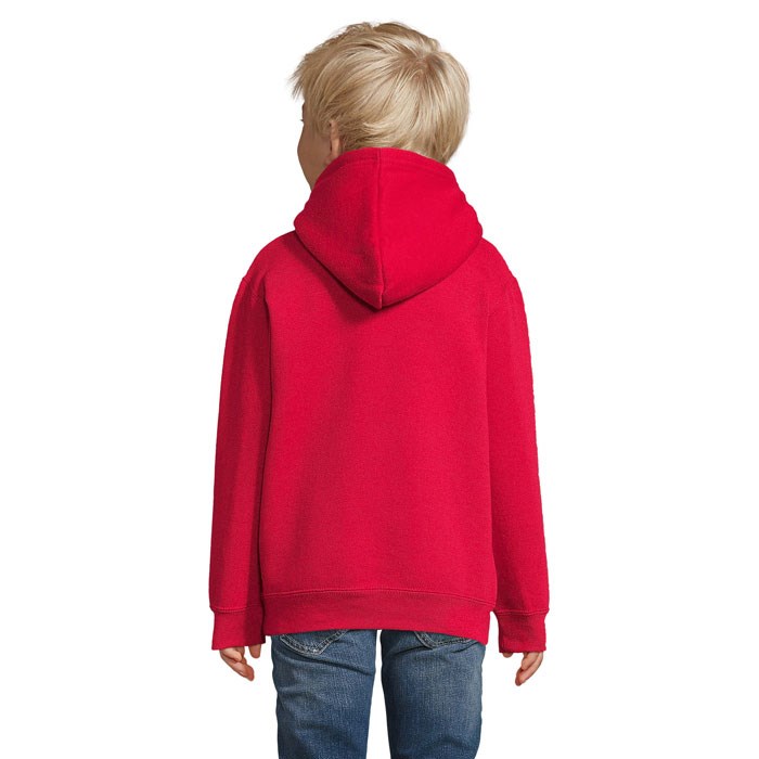 SOL'S SLAM KIDS, Kinder Hooded Sweatshirt, 50% Ringspun Katoen - 50% Polyester Geborstelde Fleece 280, Elastaan Rib, Ingewerkte Mouwen, Cut And Sewn (Gesneden en Gestikt), Kangoeroezakken, Gevoerde Capuchon Zonder Aantrekkoord. Raadpleeg De Maattabel In De Productdocumentatie Voor De Juiste Maat.