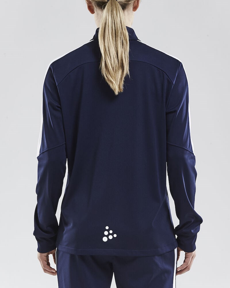 Soft and comfortable training and warm-up jacket made of functional fabric for optimal moisture transport. Works perfectly also as a team jacket for a uniform look. Strategically placed mesh panels provide enhanced ventilation. Zippered side pockets. Female fit.