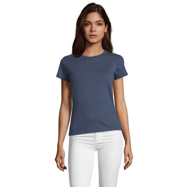 SOL'S REGENT FIT WOMEN, Dames Ronde Hals Aansluitend T-shirt, 100% Halfgekamd Ringspun Katoenen Jersey 150, Tape Aan De Binnenkant Van De Kraag, Elastaan Rib Ronde Kraag, Korte Mouwen, Cut en Sewn, (1) Heather Pink: 60% Katoen / 40% Polyester, (2) Heather Sky: 60% Katoen / 40% Polyester, (3) Grey Melange: 85% Katoen / 15% Viscose, (4) Charcoal Melange: 60% Katoen / 40% Polyester, (5) Heather Oxblood: 60% Katoen / 40% Polyester, (6) Heather Khaki: 60% Katoen / 40% Polyester, (7) Heather Denim: 60% Katoen / 40% Polyester. Raadpleeg De Maattabel In De Productdocumentatie Voor De Juiste Maat.