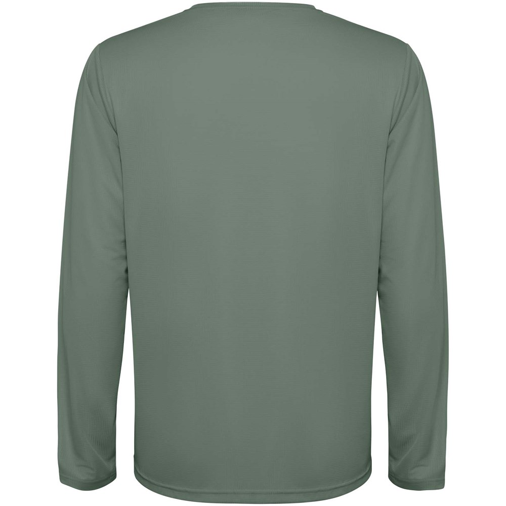 Unisex technisch T-shirt met lange mouwen voor kinderen. Kraag met bijpassende naden. Achterzoom...meer