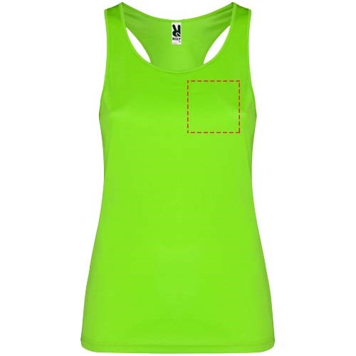 Technische, ademende, gemakkelijk te wassen en te drogen stof. Geribde armsgaten en halslijn. Racerback en zijnaden. Verwijderbaar label.