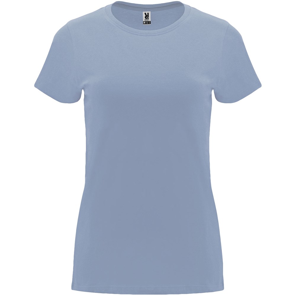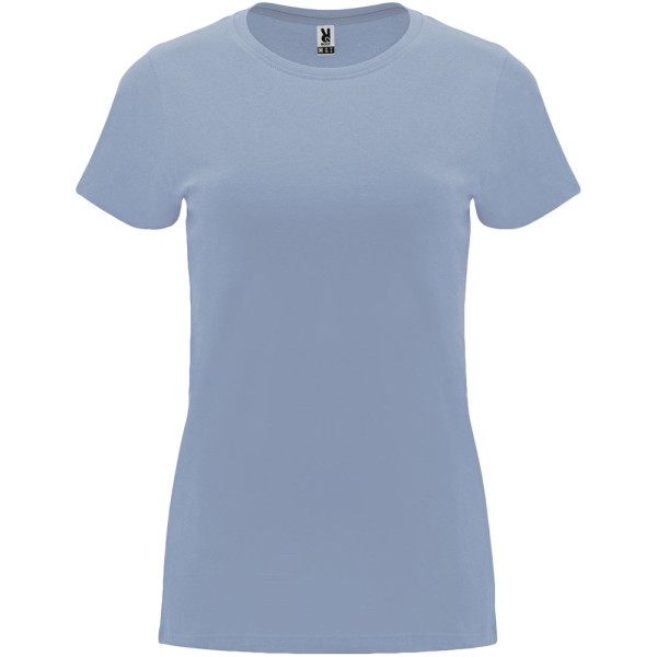 Getailleerd T-shirt met korte mouwen voor dames. 1x1 geribde ronde hals. Versterkte bedekte naden in de kraag. Verwijderbaar etiket.