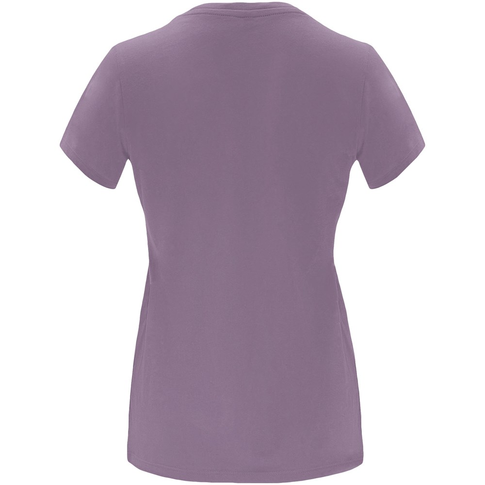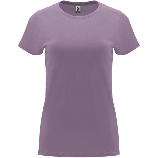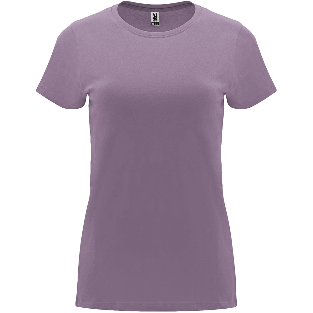 Getailleerd T-shirt met korte mouwen voor dames. 1x1 geribde ronde hals. Versterkte bedekte naden in de kraag. Verwijderbaar etiket.