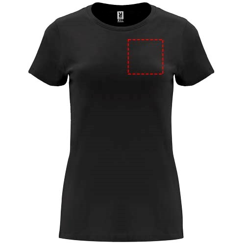 Getailleerd T-shirt met korte mouwen voor dames. 1x1 geribde ronde hals. Versterkte bedekte naden in de kraag. Verwijderbaar etiket.