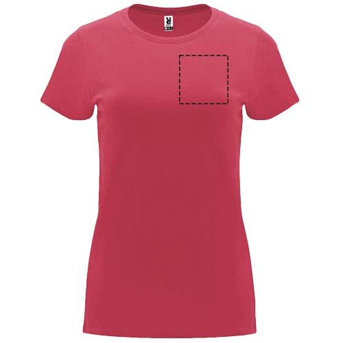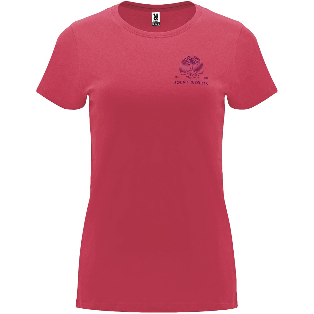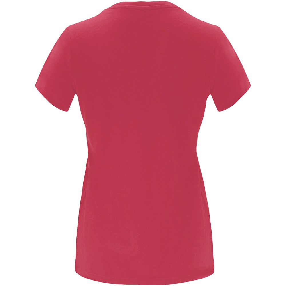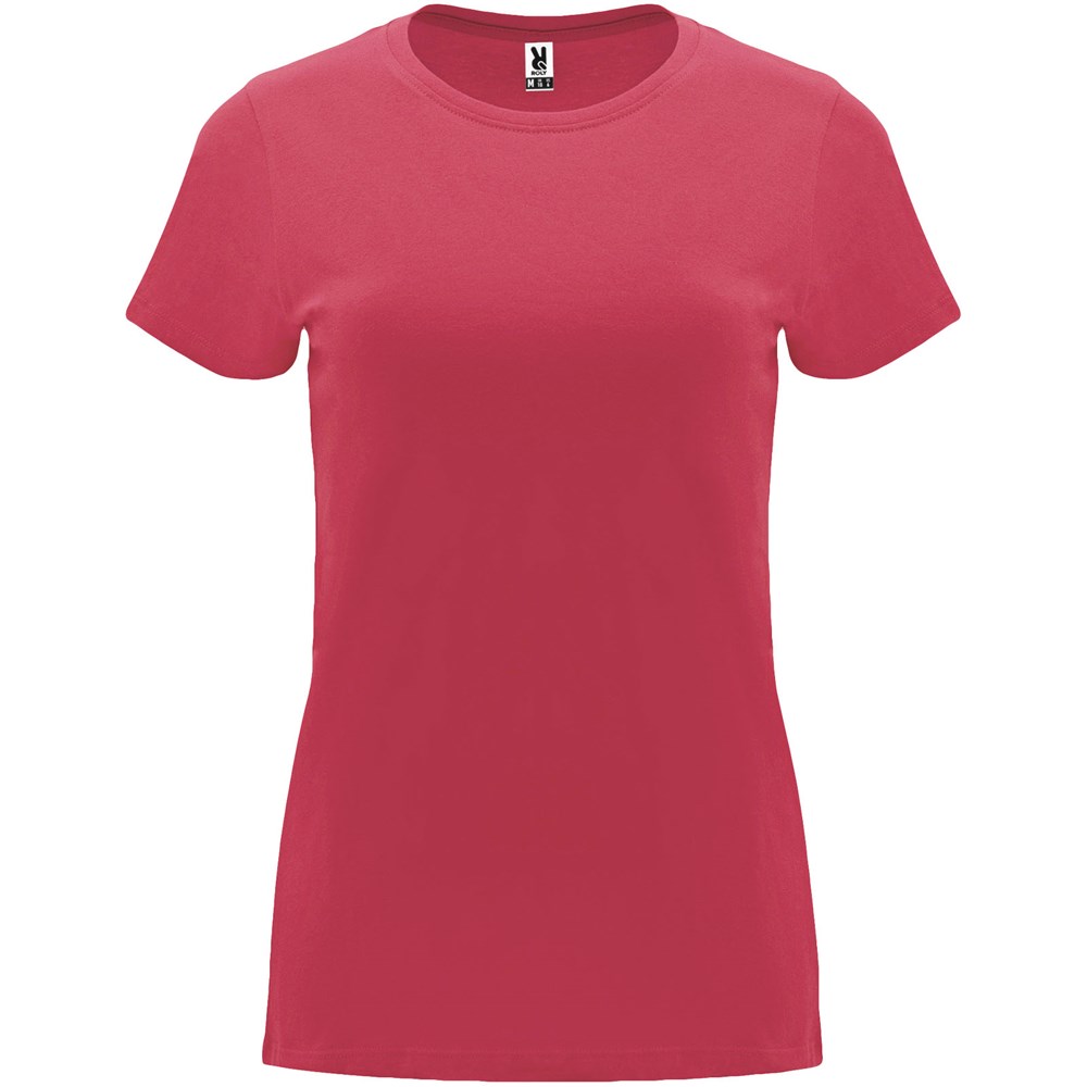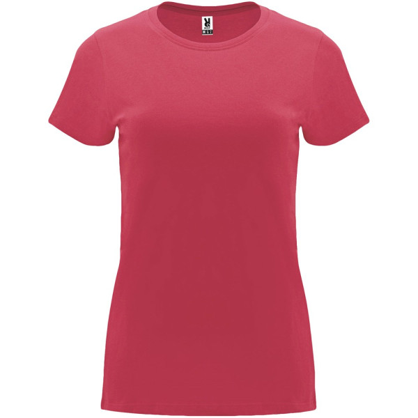 Getailleerd T-shirt met korte mouwen voor dames. 1x1 geribde ronde hals. Versterkte bedekte naden in de kraag. Verwijderbaar etiket.