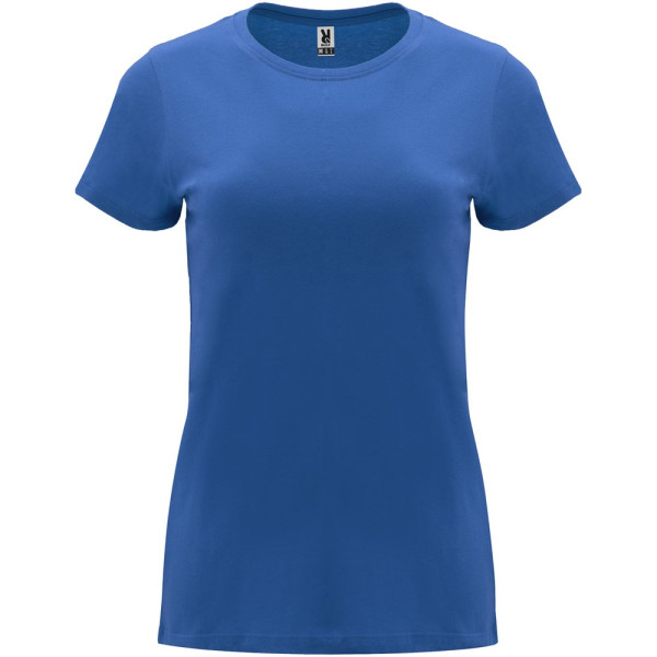 Getailleerd T-shirt met korte mouwen voor dames. 1x1 geribde ronde hals. Versterkte bedekte naden in de kraag. Verwijderbaar etiket.
