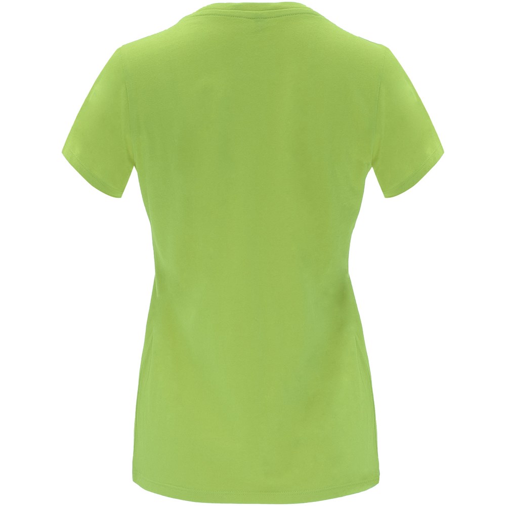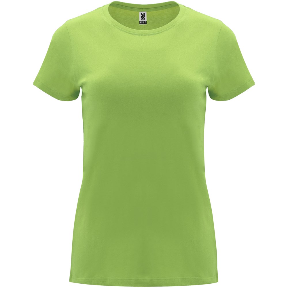 Getailleerd T-shirt met korte mouwen voor dames. 1x1 geribde ronde hals. Versterkte bedekte naden in de kraag. Verwijderbaar etiket.
