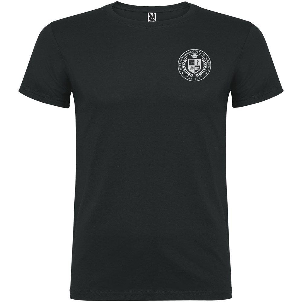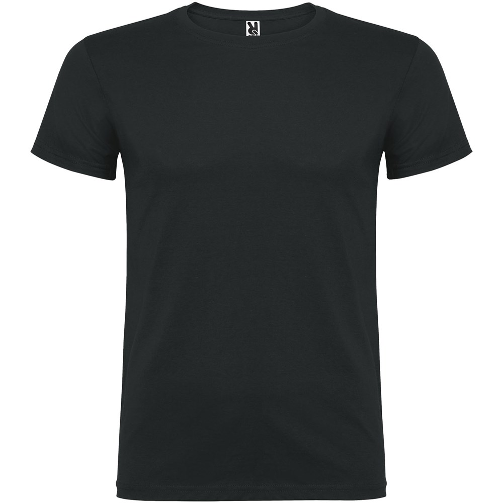 T-shirt met korte mouwen en dubbellaagse ronde hals van elastaan, gemaakt van buisvormige stof voor volwassenen. Versterkte bedekte naden in de kraag. Verwijderbaar etiket. Het model is 190 cm en draagt maat L.