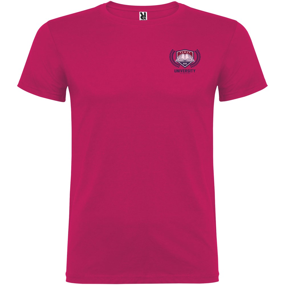 T-shirt met korte mouwen en dubbellaagse ronde hals van elastaan, gemaakt van buisvormige stof voor volwassenen. Versterkte bedekte naden in de kraag. Verwijderbaar etiket. Het model is 190 cm en draagt maat L.