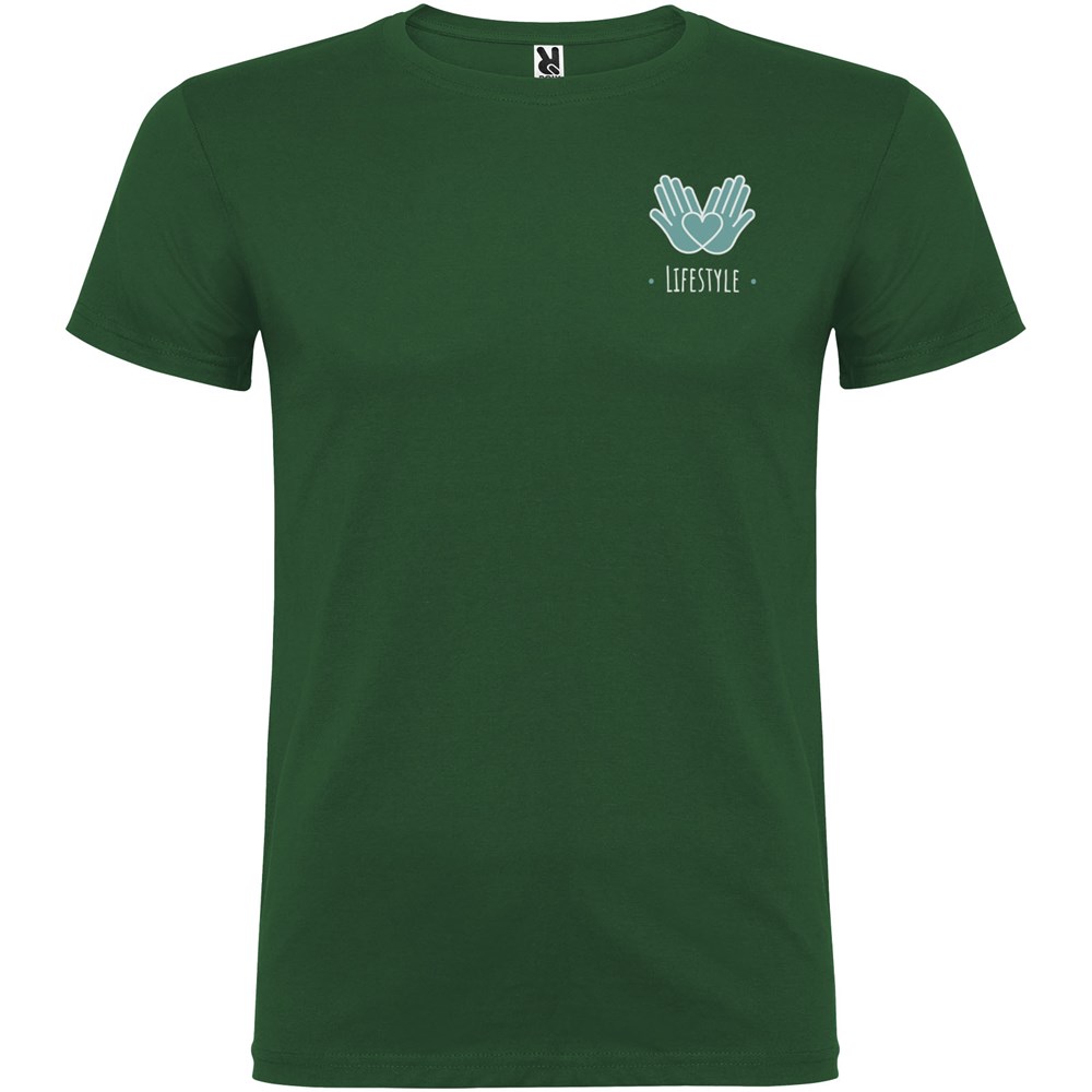 T-shirt met korte mouwen en dubbellaagse ronde hals van elastaan, gemaakt van buisvormige stof voor volwassenen. Versterkte bedekte naden in de kraag. Verwijderbaar etiket. Het model is 190 cm en draagt maat L.