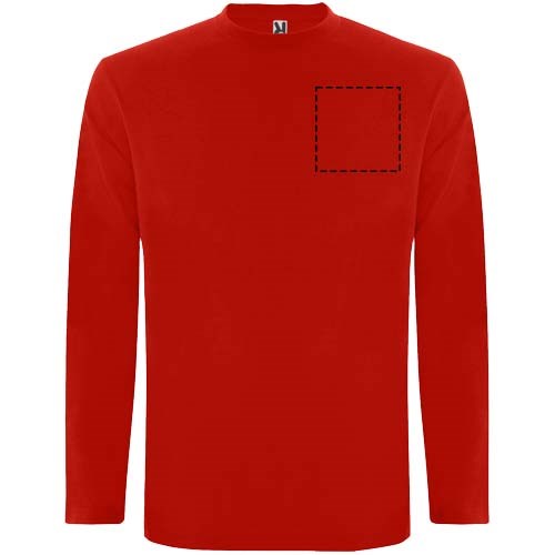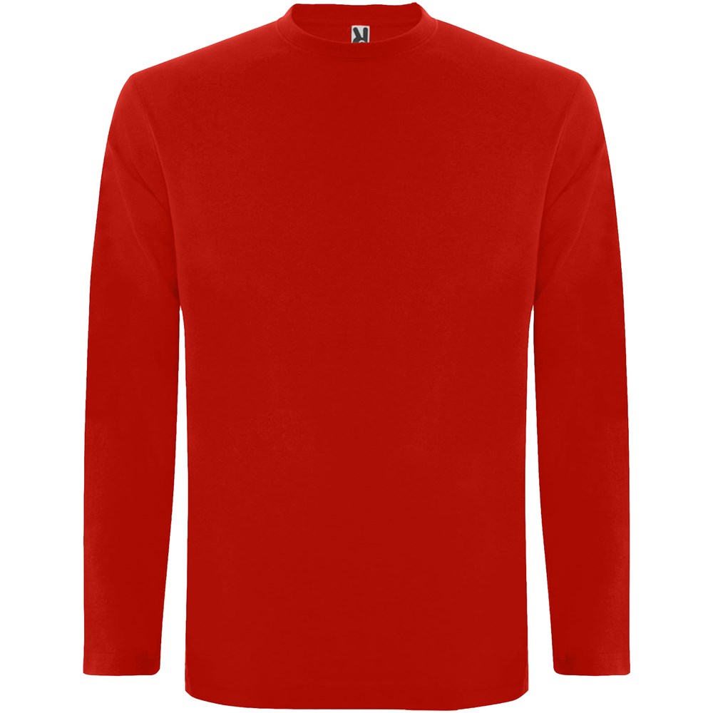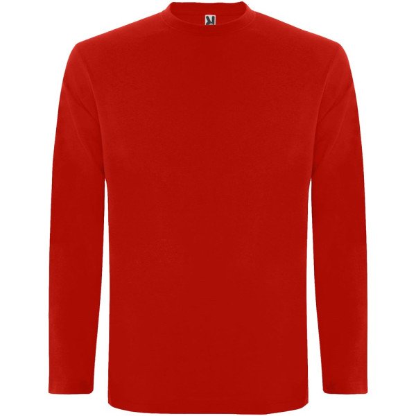 T-shirt met lange mouwen van buisvormige stof en 4-laags ronde hals. Versterkte bedekte naden in kraag en schouders. Geen manchetten. Verwijderbaar etiket. Buisvormig ontwerp in volwassen maten en zijnaden in kindermaten. Het model is 185 cm en draagt maat L.