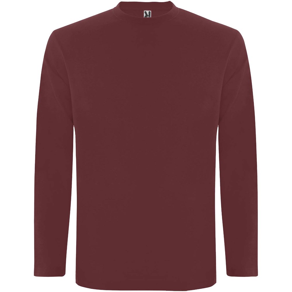 T-shirt met lange mouwen van buisvormige stof en 4-laags ronde hals. Versterkte bedekte naden in kraag en schouders. Geen manchetten. Verwijderbaar etiket. Buisvormig ontwerp in volwassen maten en zijnaden in kindermaten. Het model is 185 cm en draagt maat L.
