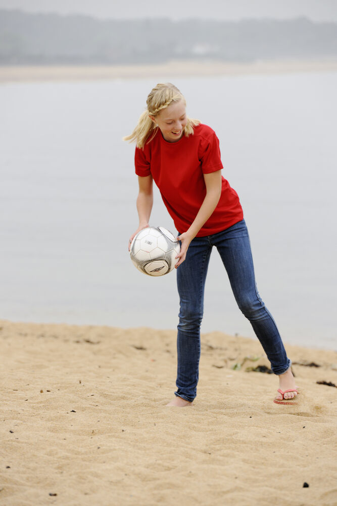Sportief, luchtig T-shirt voor kinderen gemaakt van ademend materiaal voor een optimaal draagcomfort, ook tijdens de meest intensieve inspanningen. Het T-shirt is professioneel afgewerkt met necktape en aparte panelen op de schouders. De behandelingen met softener en enzymen zorgen ervoor dat het T-shirt zacht en glad aanvoelt.